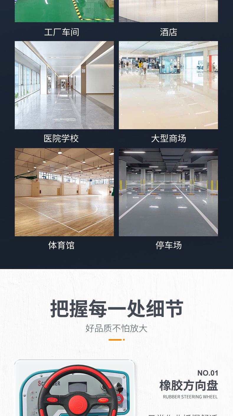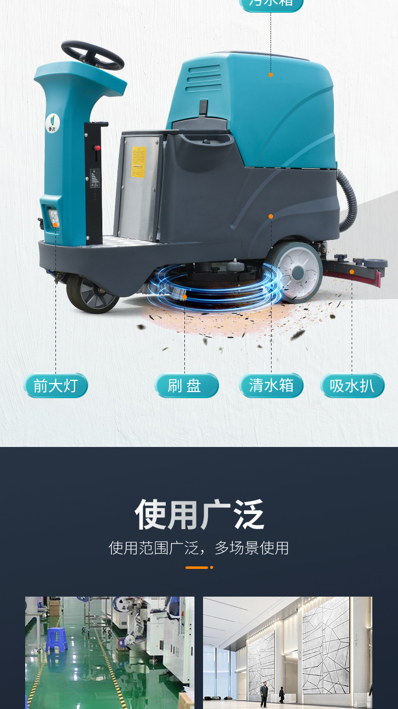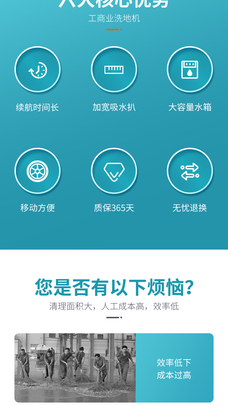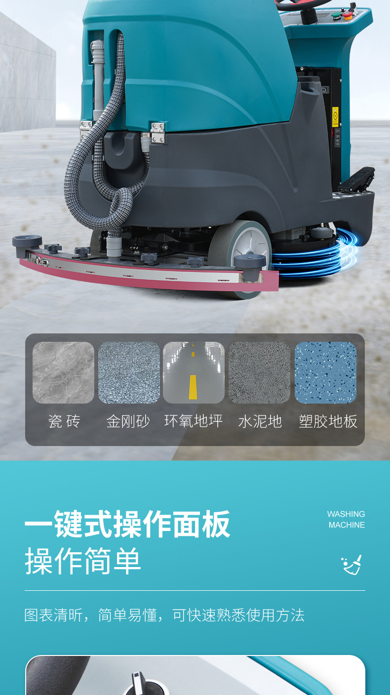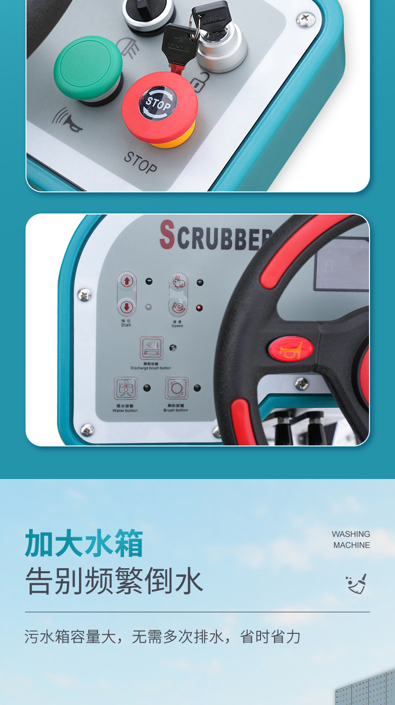· 工作效率高,機械化操作,每小時可清洗3500平方左右;超大水箱,解決了小型洗地機需頻繁加水的難題;洗刷,吸干一體化設(shè)計,使用后地面干爽