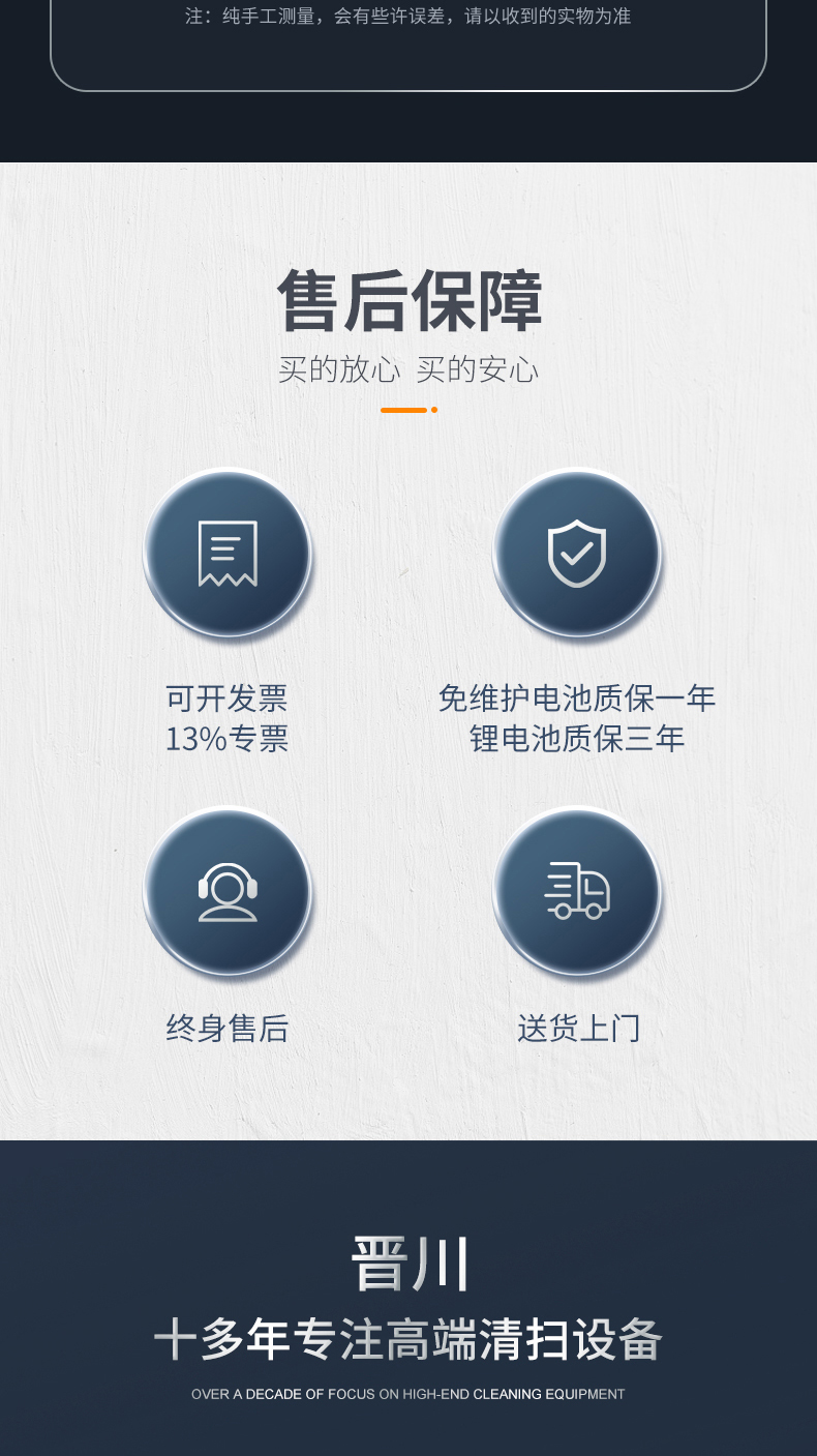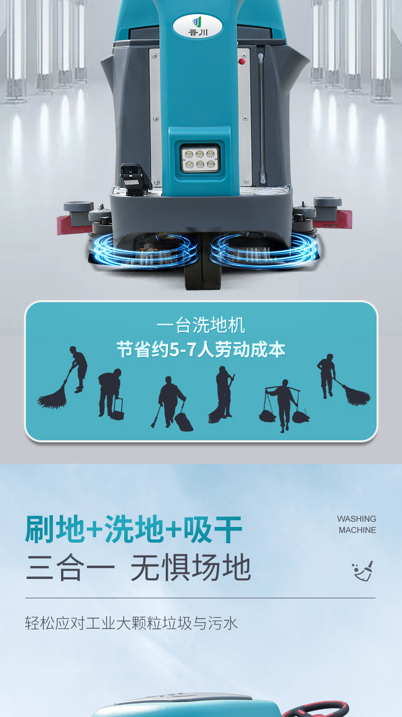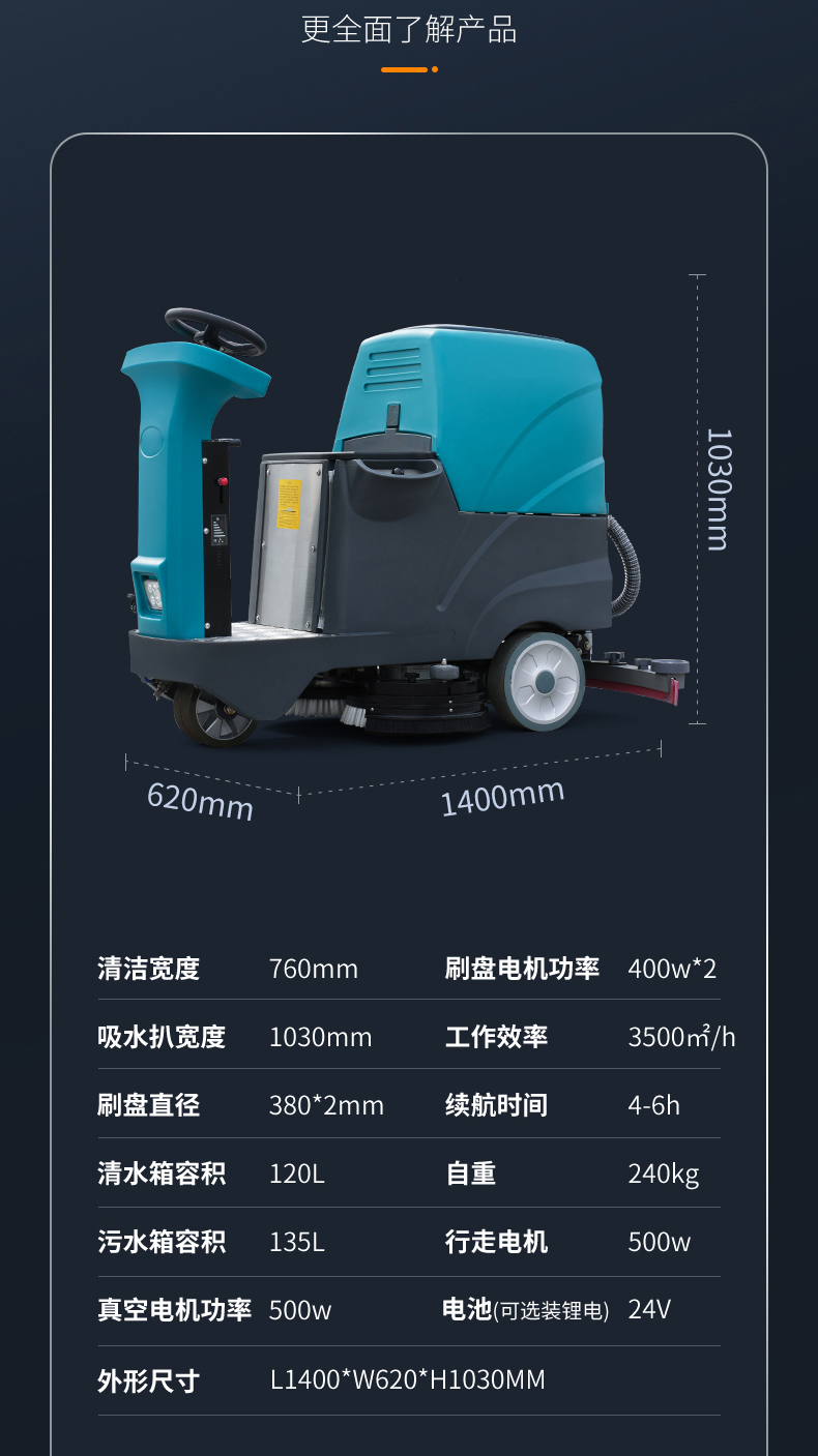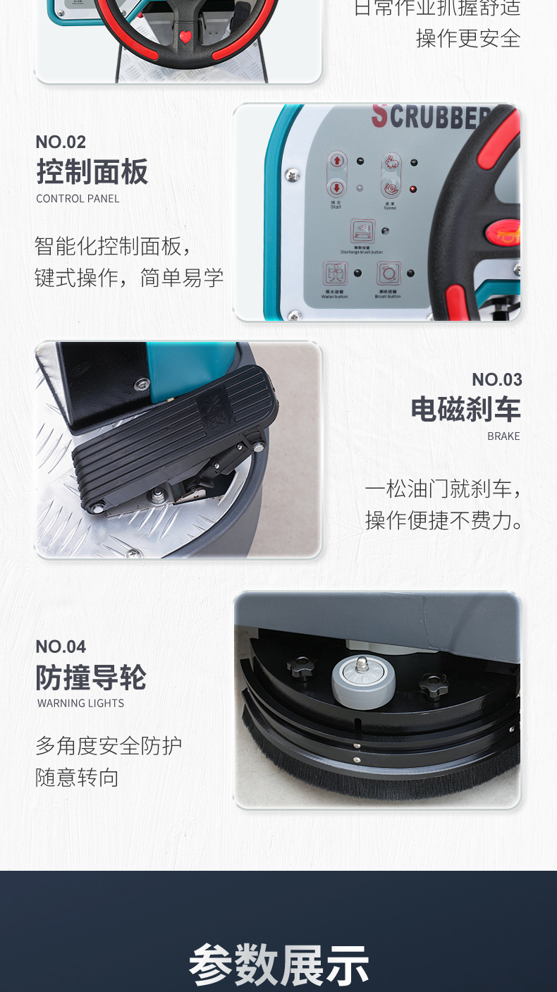 · 工作效率高,機械化操作,每小時可清洗3500平方左右;超大水箱,解決了小型洗地機需頻繁加水的難題;洗刷,吸干一體化設(shè)計,使用后地面干爽