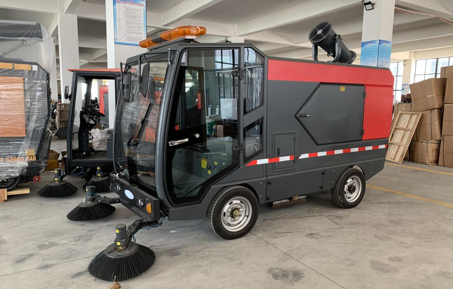 · G2300T四輪掛桶式清掃車垃圾箱可快速更換,清掃寬度可根據不同場景快速調節,適用城鎮街道、工廠、學校、醫院、機關單位等區域使用
