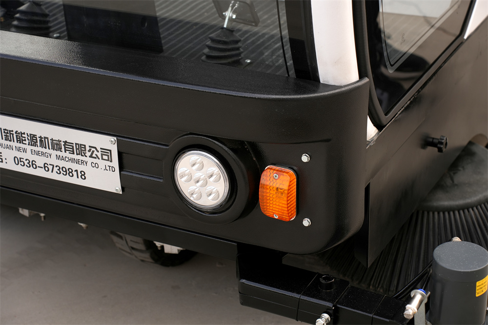 · 可伸縮式邊刷裝置,在狹窄路面及路樁位置可縮回邊刷,增加通過率。同時帶有撞擊彈回裝置,防撞性能良好