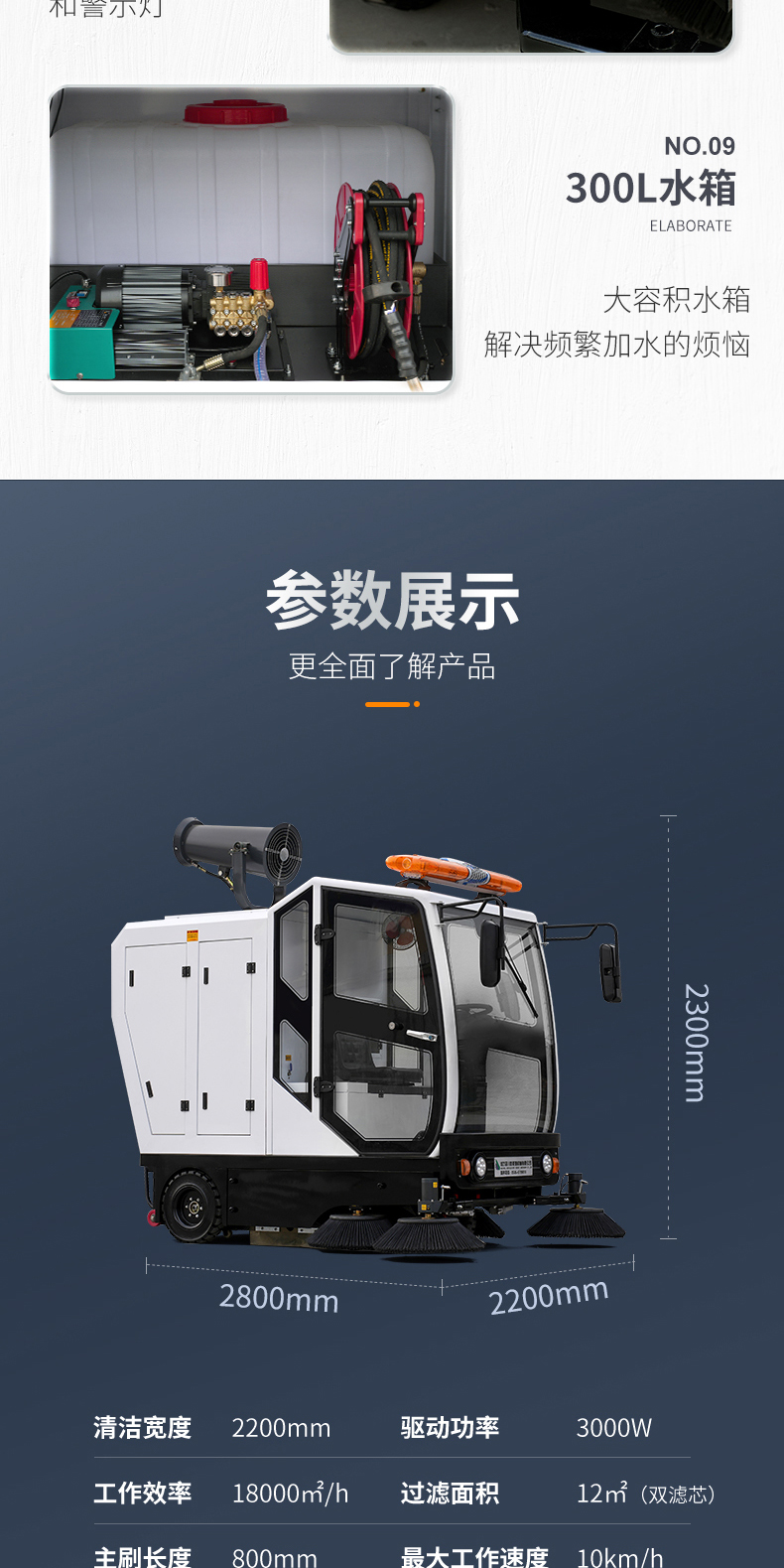 主刷長度 | 800mm | 過濾面積 | 12㎡(雙濾芯雙風機吸塵) | ||