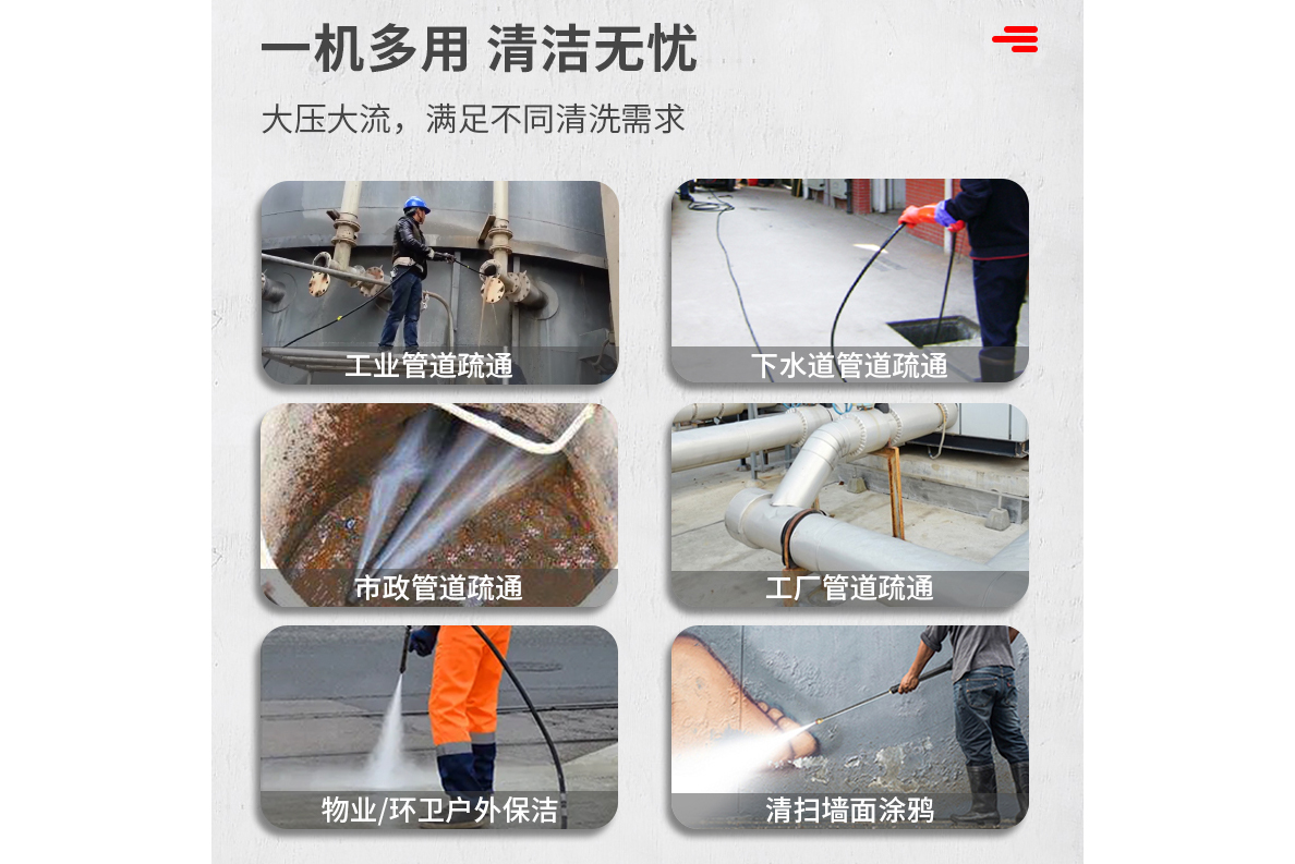 加特林出品的GAT20G戶外引擎疏通機,廣泛應(yīng)用于快速清洗大面積的污垢或者需要深入狹小管道的清洗,對于大面積清洗和狹小管道清洗這樣看似矛盾的應(yīng)用,GAT20G絲毫無錯位之感,其每分鐘41L的超大流量,使其應(yīng)付自如。在輪船的船身及管道清洗方面更顯其神威,也許叫管道清洗機更顯他的特質(zhì)
